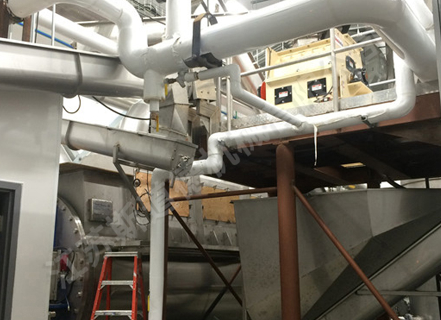 GSD型管束干燥機(jī)結(jié)構(gòu)為國(guó)固定的殼體內(nèi)安裝可轉(zhuǎn)動(dòng)的加熱管束。蒸汽通過旋轉(zhuǎn)接頭進(jìn)入管內(nèi)傳熱變?yōu)槔淠懦觯锪现械乃衷诠芡馐軣嶙兂烧羝?,由?fù)壓風(fēng)機(jī)排出,物料在管束內(nèi)被轉(zhuǎn)動(dòng)的料鏟拋灑...